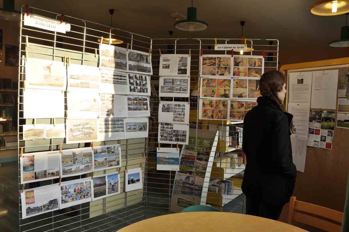 « Le lycée Roberval a mis un endroit à ma disposition au CDI où j’ai pu installer quelques photos sur des grilles caddie réalisées par les élèves du collège, j’ai rencontré quelques lycéens qui m’ont posé des questions sur le métier de photographe et je suis intervenue dans une classe de seconde où l’on a analysé quelques images de presse et débattu de la liberté d’expression. J’ai également suivi la progression d’une fresque réalisée dans le foyer lors d’un atelier graff. »