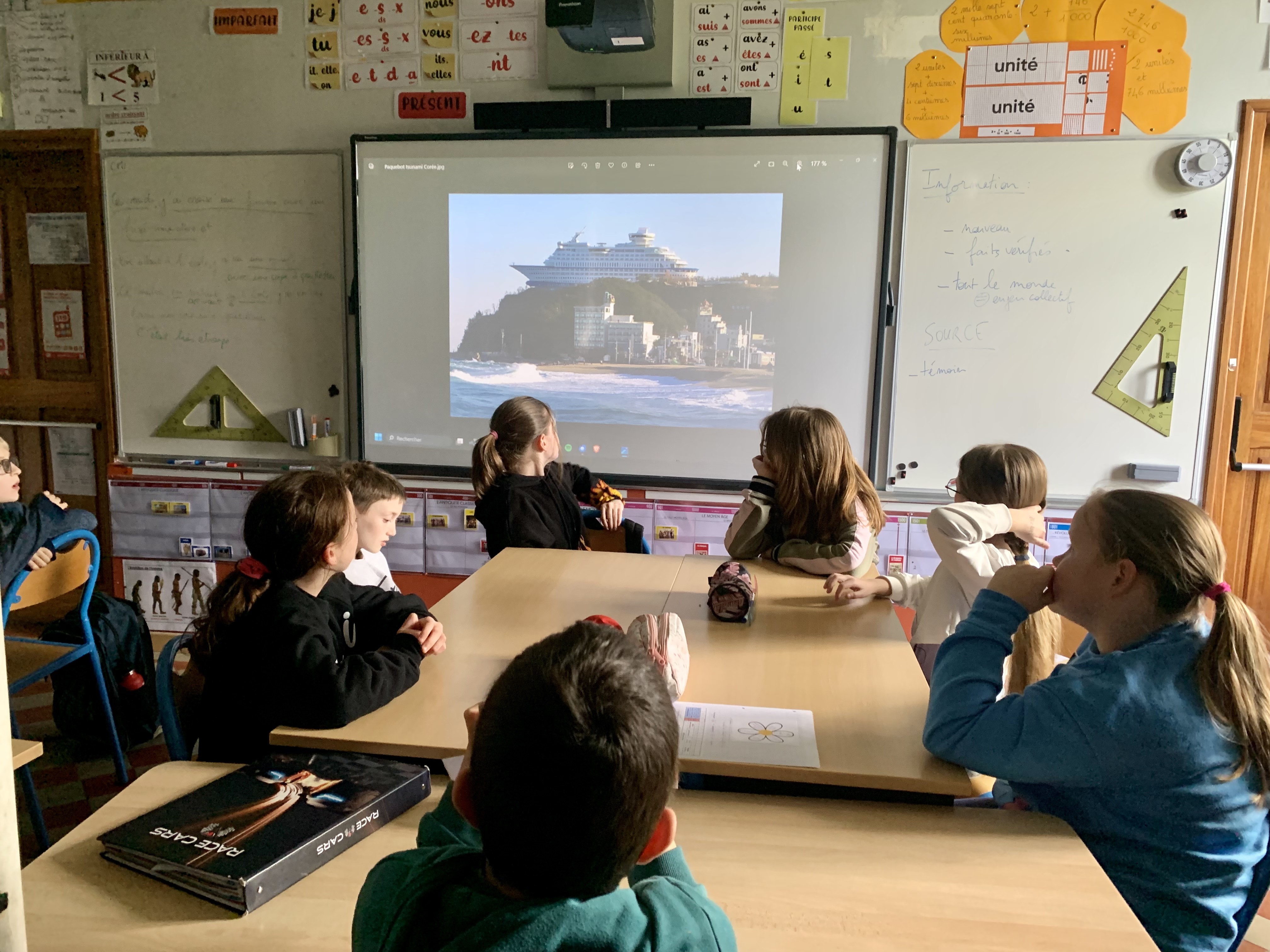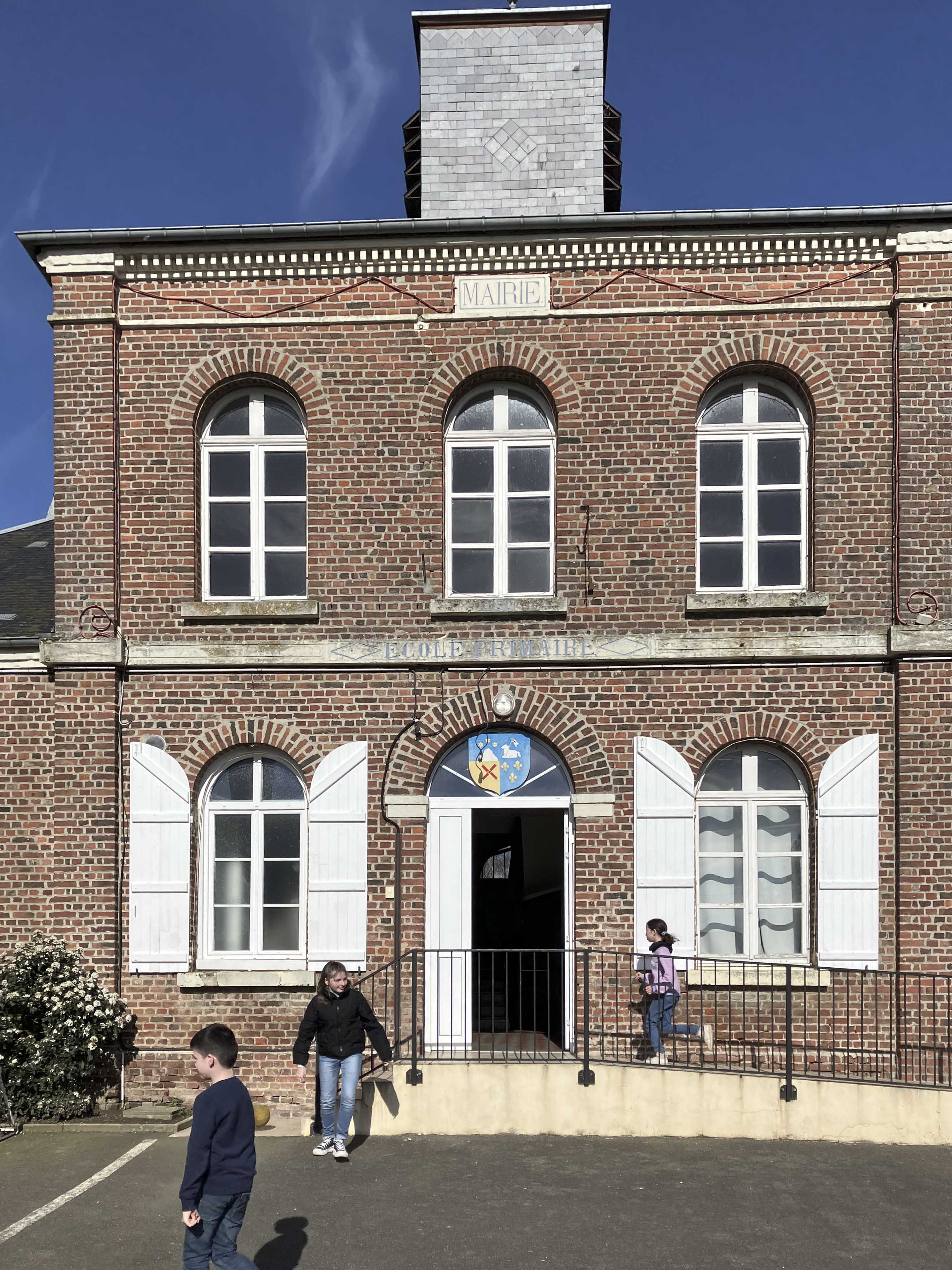 En arrivant devant l'école mairie, les panneaux des élections sont posés. Dans la classe, tous les élèves sont en mouvement pour changer de places. Certain-e-s me racontent leur voyage de la veille à Compiègne. « Nous avons été voir le wagon de l’Armistice, la clairière de l’Armistice avec ses monuments, le château de Compiègne, les jardins du château. Nous nous sommes amusés, défoulés dans les jardins en fin de journée."